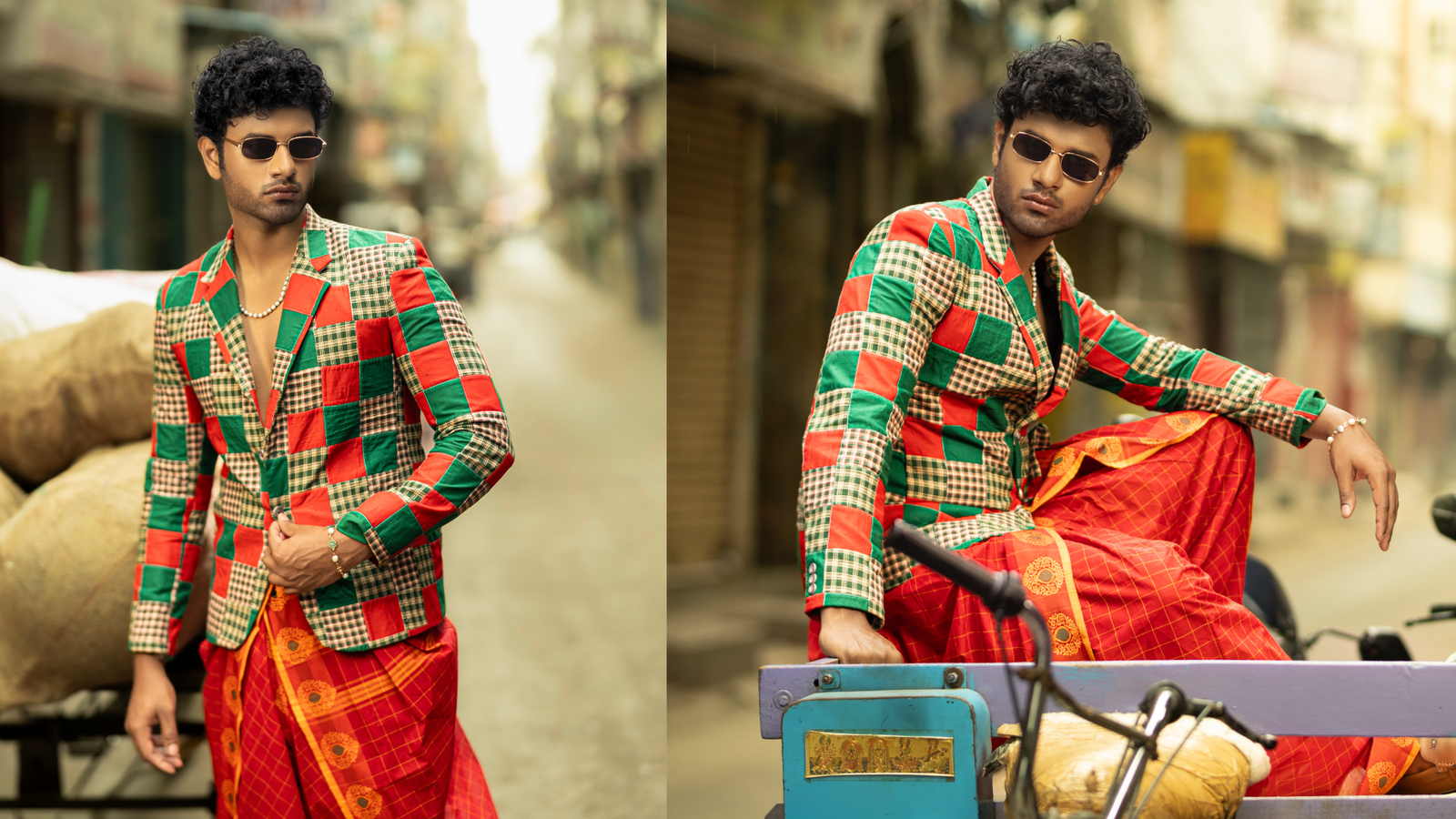 Where Raw attitude meets refined edges, Streetwear is Redefined. Each outfit becomes a Manifesto in Motion. With model Embodying Confidence and Contrast – A Bold Balance of Rebellion and Refinement. From striking poses without knowing much as a 14-year-old boy who always wanted to be an actor to now working with leading brands, this journey has been nothing short of a dream come true. Growing up, I faced mockery and stereotyping because of my skin colour. But rather than letting it dim my light, I embraced my roots with pride.I’ve always loved my South Indian skin — it’s part of who I am.It all began with casual photoshoots using my cousin’s pocket camera and school fashion shows, where I discovered the thrill of competing and performing.That’s when people started noticing me, and I began noticing myself. From striking poses without knowing much as a 14-year-old boy who always wanted to be an actor to now working with leading brands, this journey has been nothing short of a dream come true.Growing up, I faced mockery and stereotyping because of my skin colour. But rather than letting it dim my light, I embraced my roots with pride. I’ve always loved my South Indian skin — it’s part of who I am.It all began with casual photoshoots using my cousin’s pocket camera and school fashion shows, where I discovered the thrill of competing and performing. That’s when people started noticing me, and I began noticing myself. A contemporary blend of Madras checks and patchwork, woven with the grace of Andhra cotton. This dhoti pant redefines tradition with a bold, modern edge — where heritage meets innovation in every fold, celebrating craft, comfort, and cultural expression through a refreshed lens of design and individuality. Just as I was getting started, the world paused with Covid. During lockdown, I had time to explore something I’d always been curious about: the vintage aesthetic of Madras. I started designing and creating content about Old Madras, a city that shaped me. That interest gained recognition, and the path ahead became clearer. From traveling across states to collaborating with major labels, I’m living the dreams my younger self once held. I’m endlessly grateful to the individuals and brands who saw potential in me and helped bring it to life. What started as a passion became a purpose. There’s often a stereotype in our industry that models can’t act. I believe in redefining that, and one day, I will. I’m just getting started.