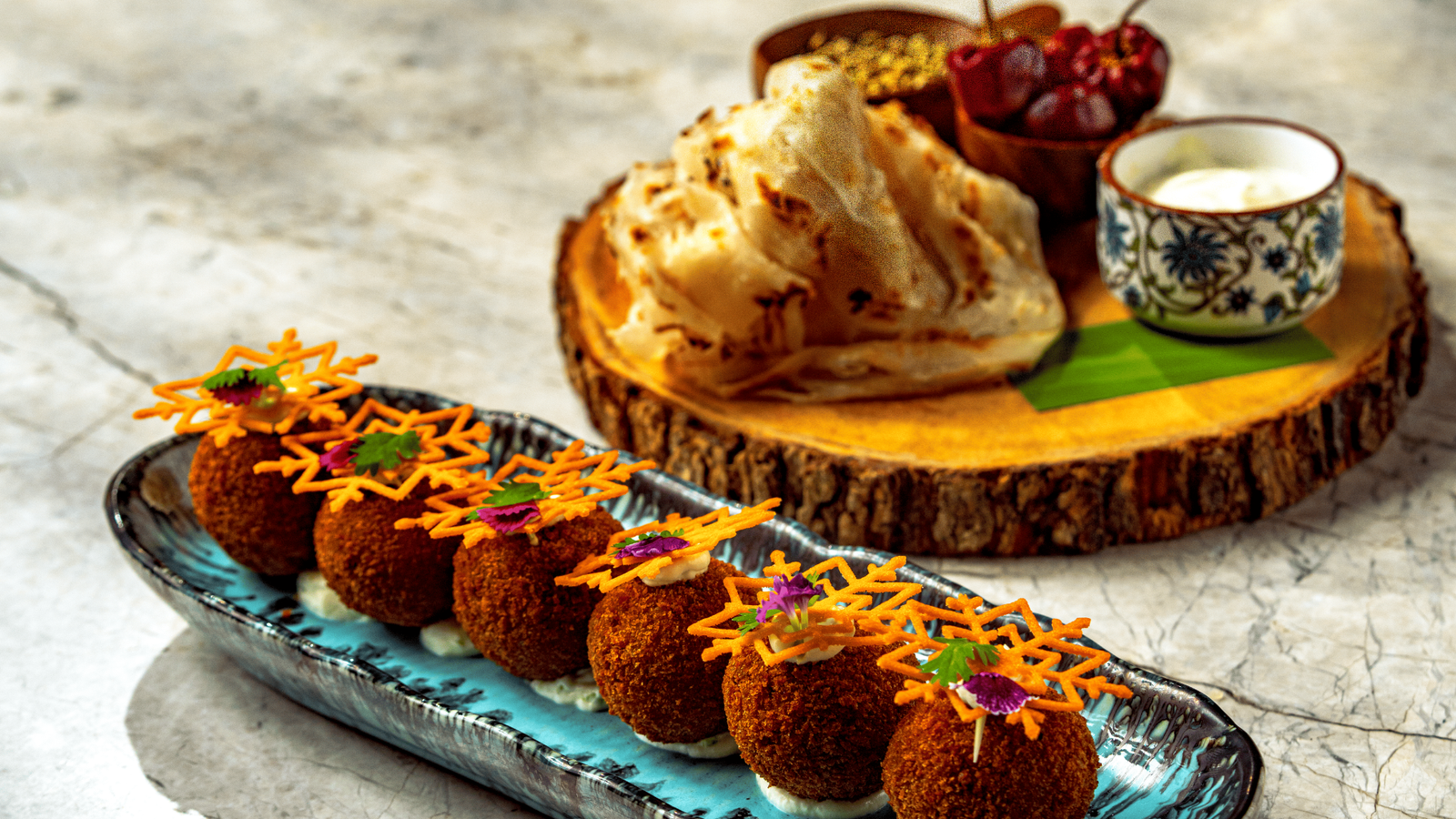 Food and Beverage – Luma Lounge When South Indian Street food meets gourmet plating. A native from Tamil Nadu and often seen and heard in the bustling by lanes of Madurai, the Kothu Parotta is more than just a dish — it’s a spectacle. The rhythmic clang of metal spatulas on the hot tawa, the hypnotic tossing of shredded parotta with spicy salna, egg, and onions – this humble dish has long captured the hearts of street food lovers across Tamil Nadu. But what happens when this iconic street-side chaos is reimagined in a gourmet kitchen? Enter the Kothu Parotta Cutlet. At Luma Lounge, we take the soul of Kothu Parotta — flaky, fiery, fragrant — and reshape it into a hand-crafted cutlet. The mixture is spiced, rested, and gently rolled into cutlet with stuffed cream cheese then to a golden crust, creating a texture that’s crisp outside and melting inside. It’s served with a cool cream cheese dip to balance the heat, offering a bite that’s equal parts nostalgia and innovation. “This isn’t just fusion — it’s a respectful evolution. A nod to our streets, plated for our stories. “Perfect for sharing, this dish brings the comfort of a local street corner to the elegance of a cocktail soirée. Concept: A refined take on classic Kothu Parotta, reshaped into cutlets stuffed with spiced cream cheese, coated in panko, and fried until golden. Ingredients For the Kothu Parotta Base: · Parotta – 10 nos (shredded) · Onion – 3 medium (finely chopped) · Tomato – 2 medium (chopped) · Green chilies – 2 (chopped) · Ginger-garlic paste – 1 tbsp · Curry leaves – few · Salna Veg – 1 cup (reduce to thick) · Red chili powder – 1 tsp · Turmeric powder – ½ tsp · Garam masala – 1 tsp · Coriander leaves – 2 tbsp (chopped) · Salt – to taste · Oil – for cooking For the Cream Cheese Stuffing: · Cream cheese – 150g · Roasted cumin powder – ½ tsp · Chopped mint – 1 tsp · Crushed green chili – ½ tsp · Salt – to taste For Breading: · Refined flour – ½ cup · Panko bread crumbs – 1½ cups Method Step 1: Prepare Kothu Parotta 1. Heat oil in a pan. Add onions, green chilies, curry leaves. Sauté until golden. 2. Add ginger-garlic paste and cook till raw smell goes. 3. Add tomatoes, turmeric, chili powder, and garam masala. Cook till tomatoes break down. 4. Add salna and mix well till you get a thick masala base. 5. Add shredded parotta and toss well on medium-high heat. 6. Add coriander leaves and salt if needed. Cool completely. Step 2: Prepare the Cream Cheese Filling 1. Mix cream cheese, roasted cumin, mint, chili, and salt until smooth. 2. Pipe or roll into small 8-10g balls. Chill in freezer for 15 mins. Step 3: Form and Crumb the Cutlets 1. Take a lemon-sized portion of cooled kothu parotta mix, flatten in palm. 2. Place a cream cheese ball in center and gently seal and roll into a ball/cutlet shape. 3. Dust with flour, dip in thin Flour wash, then coat with panko crumbs. 4. Chill for 15 minutes before frying. Step 4: Fry and Serve 1. Deep-fry at 170°C until golden brown and crispy. 2. Serve with cool cream cheese raita dip .